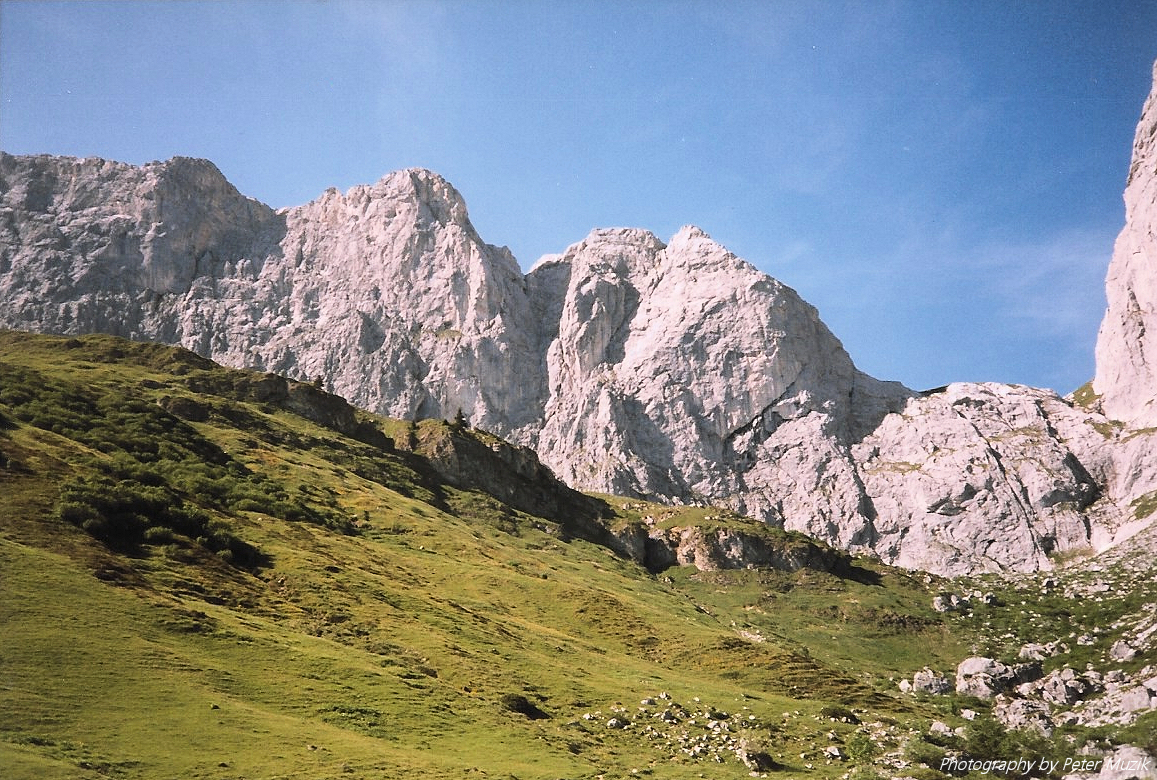 Das Rätikon bildet, wie eine Mauer, ein Teil der Grenze zwischen der Schweiz und Österreich. Östlich vom Fürstentum Liechtenstein.